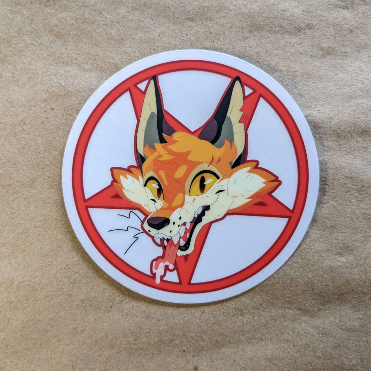 A single, devious die-cut 3" vinyl sticker with a transparent background. Tired of folks demonizing your fun and fuzz-filled sub-culture with the same old Satanic Panic scare tactics? Well here's a wicked jab at all that nonsense.