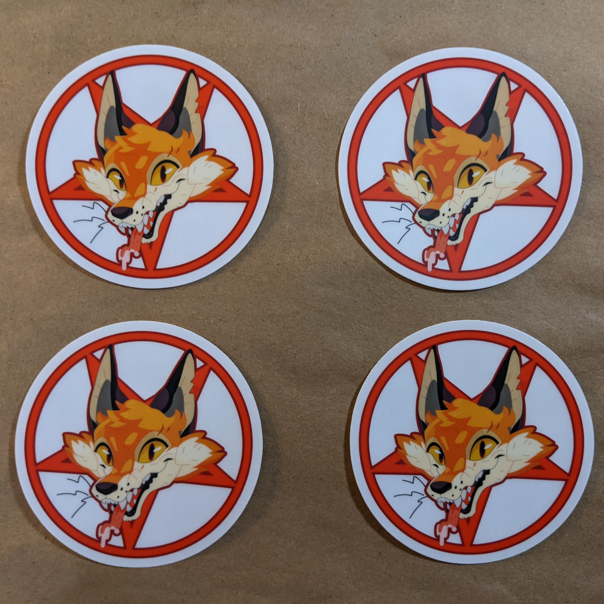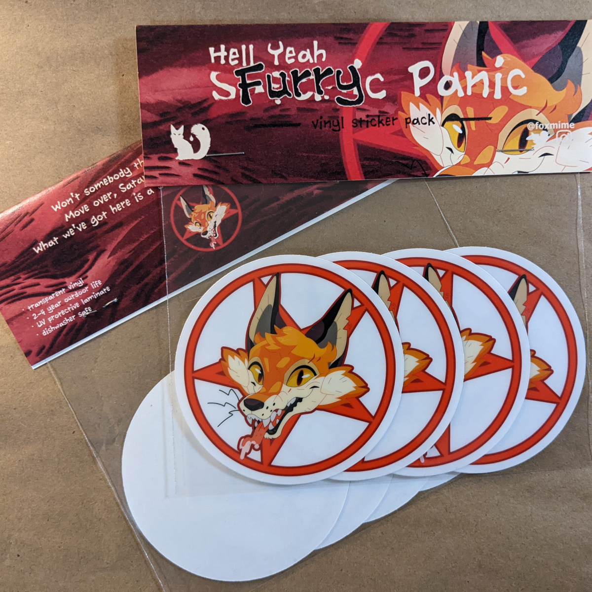 Four of the same devious die-cut 3" vinyl sticker with a transparent background. Tired of folks demonizing your fun and fuzz-filled sub-culture with the same old Satanic Panic scare tactics? Well here's a wicked jab at all that nonsense, with extra stickers to share and/or spread the mischief (or at least help with any indecisions on where to slap 'em)!